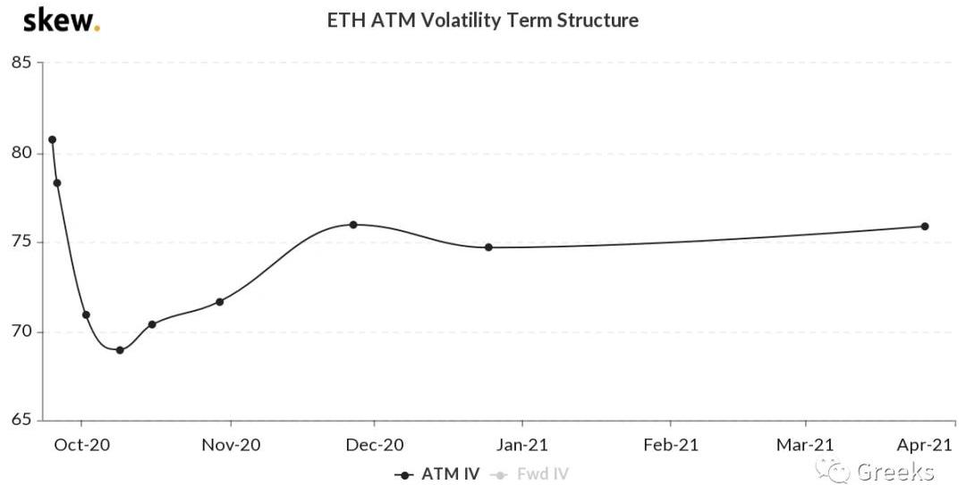 ETH歷史波動率10d94%30d111%90d84%1Y105%以太坊今日期權持倉量4.01億美元,成交量3300萬美元。各標準化期限IV:今日:1m71%,3m75%,6m76%9/23:1m68%,3m73%,6m71%超短期IV再次回到80%,但是這里要提一句,超短期的期權IV實際上是失真的,只能作為參考。以太坊各期限IV小幅上升,但是仍處于近期低位。