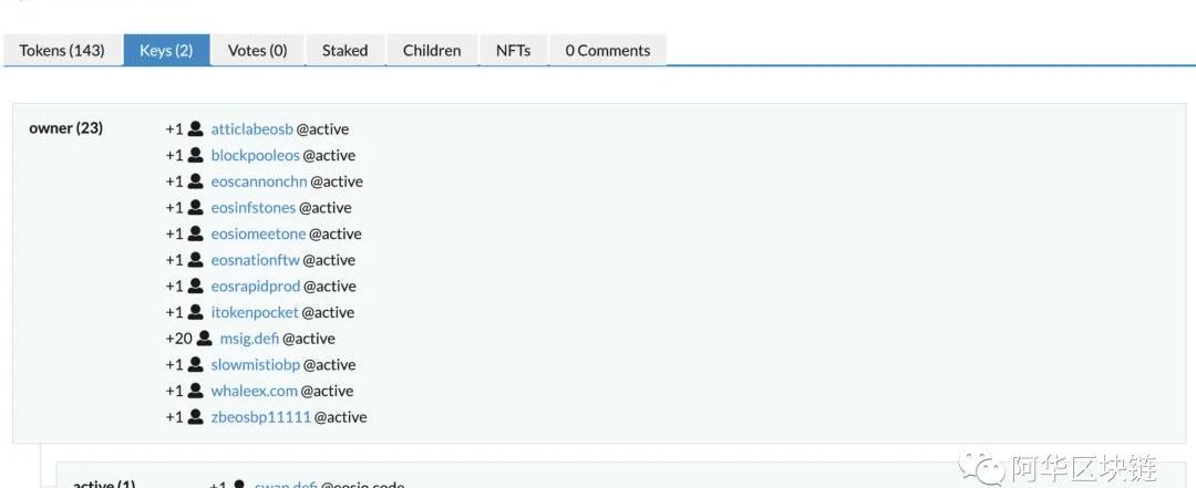 如果審計后合約代碼再開源,那當然是更好的。2、合約賬戶多簽無論是合約代碼經安全機構審計,還是審計后的代碼開源,這些都是在合約代碼層面所做的。合約經過審計后,某種程度上阻止了黑客,但并不能阻止項目方跑路,因為合約賬號的私鑰是在項目方的手里的,如果沒有設置多簽,項目方單方面就可以轉走合約賬號里邊的資產。如果合約經過審計后,再加上設置多簽,那當然就安全多了。如果說合約審計主要是為了防黑客,那么多簽主要就是為了防止項目方跑路的。對于EOSDeFi項目來說,"合約審計+多簽"應該是標配,雖然這并不能保證100%不會出事,但至少可以在很大程度上降低出事的概率了。合約賬戶設置了多簽功能,就一定安全嗎?即使合約賬號開啟了多簽功能,也未必一定能達到我們想要的多簽功能,關鍵要看多簽具體是怎么設置的,正如鯨交所俊總所提醒的那樣:多簽要注意門限規則,如果項目方可以直接或者間接控制多方簽名達到門限要求,就可以任意控制帳戶,與其他多簽方無關。所以,即便是多簽功能,也是要注意避坑的。1)打開賬戶權限看看多簽設置是否合理對于合約賬戶的多簽設置,我們還是要打開看看是否設置合理,看看是否存在控制或串通的跡象。如果項目方可以控制其他簽名方,那多簽形同虛設,本質上就是個騙取韭菜的幌子,千萬不要被障眼法給迷惑了。例如一個多簽賬號參與簽名的節點有10個,而且采用的是"1+3"的多簽模式,即項目方和其他任意3方都簽名同意即可。但是在這10個節點中,其中有3個節點賬號實質上是受項目方控制的,或者和項目方能夠串通,那這樣的多簽就是沒有意義的,參與簽名的節點數量再多也沒用,因為無論參與簽名的節點數有多少個,只要能夠和其中3個達成共謀就可以了,其他節點也都是擺設。因此,對于多簽賬戶,我們要看每一個參與簽名的節點,看看是不是相互獨立的,是不是能夠受到項目方的控制。當然了這很難判斷,但是,如果參與簽名的節點都是EOS社區中比較出名的超級節點,相對來說風險就會大大下降,畢竟EOS超級節點相對來說還是靠譜的,哪個超級節點是誰做的,基本上都是公開的,都是能找到人的。目前來看,大寶和大豐收的多簽設置還算是比較合理的。