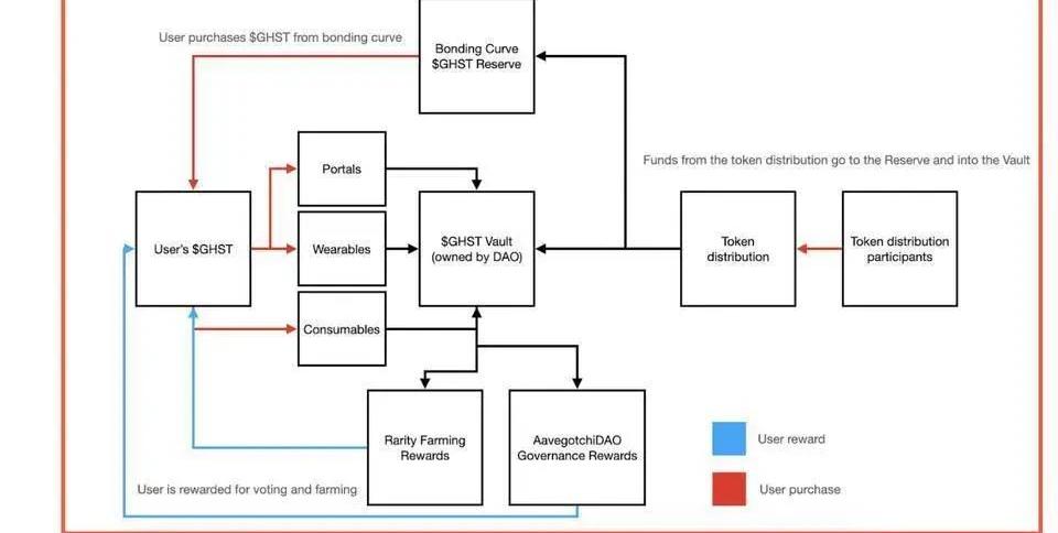 GHST可以用來購買游戲裝備和消耗品,提升Aavegotchi的稀缺性。GHST也是一種治理代幣,因為社區治理投票的門檻,要求參與者有1個Aavegotchi和GHST代幣。除此之外,在AavegotchiDAO2.0中,用戶參與投票,可以獲得GHST獎勵。
