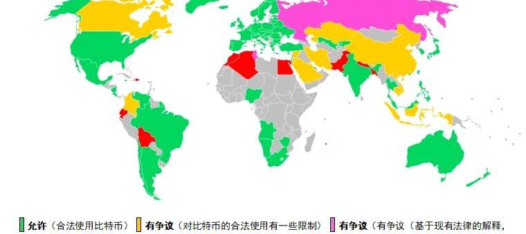 區塊鏈行業可以被比作互聯網。而交易所與電子商務也有類比性,是區塊鏈行業在“金錢”方面的一個衍生。區塊鏈可以和各種行業綁定在一起,利用自身特點相互促進該行業的發展,早年這樣的共贏模式被稱為互聯網的寄生,而如今更多行業依附互聯網生存。從互聯網和電子商務的發展歷程看,交易所若想發展至電子商務如今的市場占有率和普及率,就要解決橫在面前的一大問題:數字資產的合法性以及交易所經營的合法性。我們用比特幣的合法性來映射整個數字貨幣在全球的法律地位: