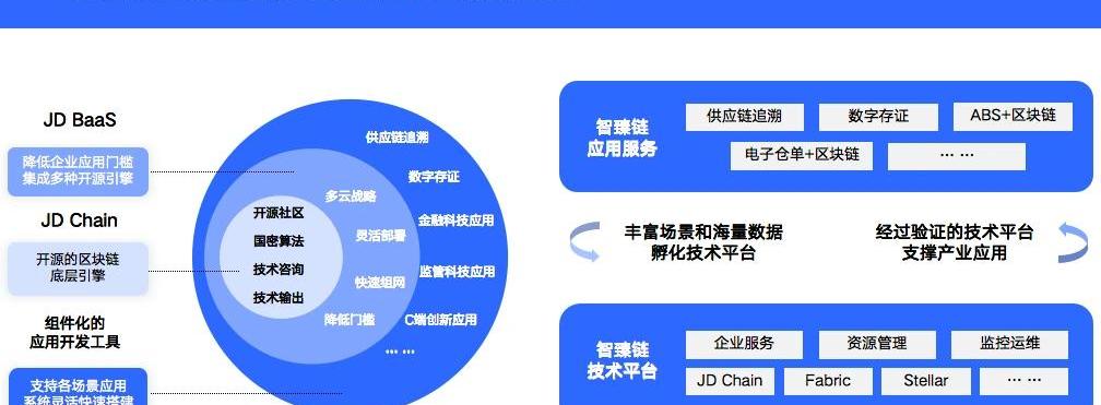 講話的精神是這樣,就是在當今時代,區塊鏈很有可能是中國這幾十年來真正讓中國在全球起到引領性作用的一項技術,那么多的技術其實咱們主要是學習并應用,靠著我們強大的互聯網基礎設施,卓越的舉國體制快速去趕超,但在區塊鏈的領域咱們真有可能去實現核心技術自主創新的一個重要突破口。同時,我們不僅強調技術的重要性,也要看技術如何跟我們的產業創新、經濟社會結合起來。京東在這塊的探索重點聚焦在數字金融和供應鏈管理。在深入介紹之前我想先介紹一下我現在所在的公司。京東數科是京東集團的八大業務板塊之一,如果把京東比喻成一個龐大艦隊的話我們可能是其中三個主艦之一。第一個是大家非常熟悉京東零售,這是中國最會賣貨的平臺;京東物流,最會搬箱子的公司之一;京東數科,我們的前身叫京東金融,從2018年的12月正式升級為京東數字科技。現在大家可以看到好多公司都叫XX數科。那么京東金融為什么要升級為京東數科呢?現在的金融科技帶來了很多賺錢的機會,在這樣產業數字化的背景下,金融科技有非常多服務于產業的機會,對于京東數科來講我們不僅僅是改了個名字,原來我們是業內領先的金融科技公司,但現在我們要做更卓越的數字科技公司,它核心的點在于我們不再單純做金融科技這一塊了,我們要用技術去賦能產業,讓更多的產業完成數字化。大家日常生活中,包括企業經營中都能感受到數字化、信息化在快速增長,在傳統產完成的轉型升級以后我們再提供金融科技服務,這是一個非常順的邏輯。再說到京東的區塊鏈,京東的區塊鏈我們很早就給他起了一個名字叫“智臻鏈”。這是2018年我們第一次做品牌升級的時候賦予了他美好的愿望,我們希望用智能技術的組合去服務于人民的美好生活,通過鏈來共建、共治和共享。我本人算是京東區塊鏈的創始人了,區塊鏈在我眼中就是一個工具的概念,單個技術你想讓它產生變革其實是很難的,我們看重的是,要把新型技術組合起來,應用到產業或經濟里面去促進增長。現在最火的這幾項技術,AI、云計算,大數據,物聯網,區塊鏈,我們在3年前就有很深入的思考。物聯網采集實時、準確且安全的信息,采集完的信息可以通過云計算獲取和存儲,然后大數據開始做數據的挖掘、篩選和分析,大數據把分析后的結果提供給人工智能,人工智能需要大量的海量的數據去訓練,我們看到信息從誕生到使用的一個全過程。區塊鏈在此中就是保證信息的安全、不可篡改、可追溯,跨主體的信任和降低協同的成本。我們認為區塊鏈是新型生產關系的代表,是相信一家公司不能把所有的事情全做完,一定要有個商業的生態,大家去協作,在協作的過程當中自然要通過區塊鏈實現更低成本的共享。這張圖講了現在京東區塊鏈的技術能力。