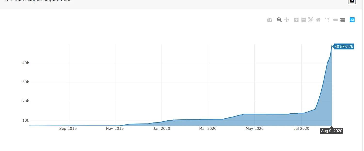 NexusMutual有最低資本要求MCR,可以把MCR理解為滿足系統內特定時間內索賠負債的最低要求。每賣出一份保險,MCR值都會增加,因為意味著索賠負債的增加。目前MCR的值為48500ETH,ETH按照390美金計算,MCR約為1900萬美金。