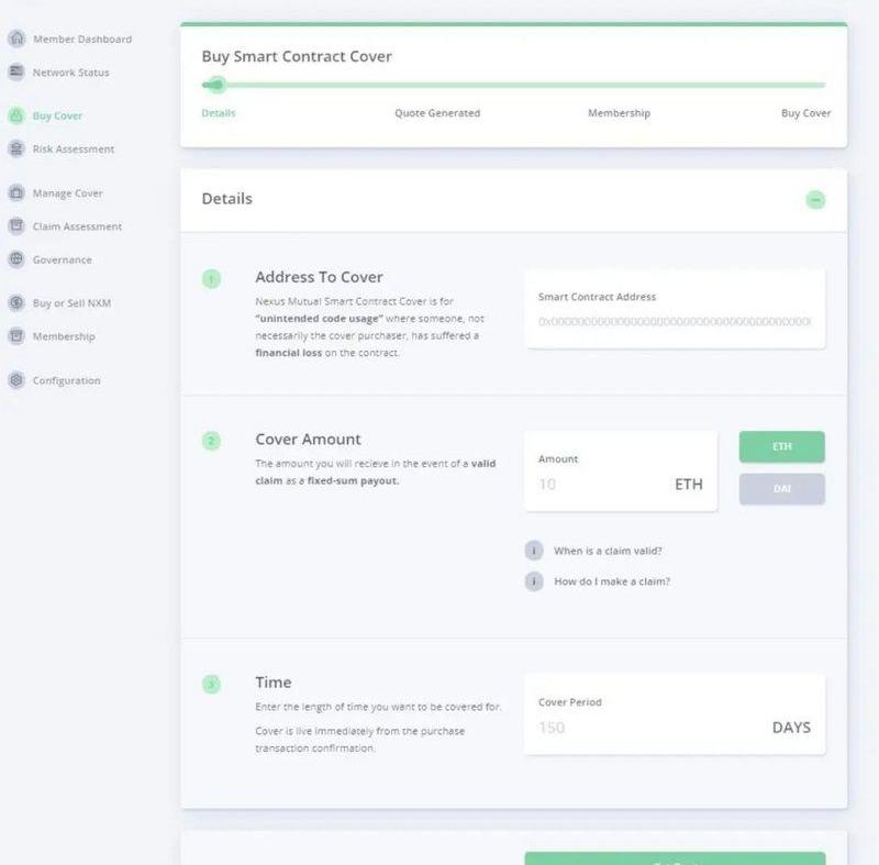 購買界面在NexusMutual中,所有治理措施均須經由成員、咨詢委員和所有者的提議和投票。成員提出的提案須由咨詢委員會列入白名單。每個治理提案都有一個與之關聯的類別,該類別定義了投票結束時要執行的解決方案。距離更近的一次實踐是:2020年初,bZx遭到黑客入侵事件,NexusMutual完成了第一筆索賠要求。但NexusMutual的發展也非一帆風順。今年2月25日,NexusMutual的治理措施被安全研究人員MuditGupta和SamSun爆出兩個漏洞,好在漏洞未被黑客利用,保險基金未有損失。NexusMutual首席技術官RoxanaDanila隨即在Medium上發表文章披露漏洞的具體情況和解決方案,并向兩位發現漏洞的安全人員表示感謝。Roxana解釋道,潛在漏洞為,提案的解決方案在成員投票前并未被證明是有效的。因此,咨詢委員會中的成員很有可能將針對特定類別的提案列入白名單,卻在實踐中執行其他操作。這就意味著盡管成員們在為“公司變得更好”而投票,但他們很有可能在不知情的情況下將票投給某些惡意行為。總體而言,NexusMutual本質上是由智能合約驅動的保險,這意味著DeFi用戶可以購買Compound或MakerDAO或Uniswap或Curve等產品的保護。如果要與多個協議進行交互,或者使用的是互為基礎的協議,則購買范圍需要完全涵蓋每個協議。推薦閱讀