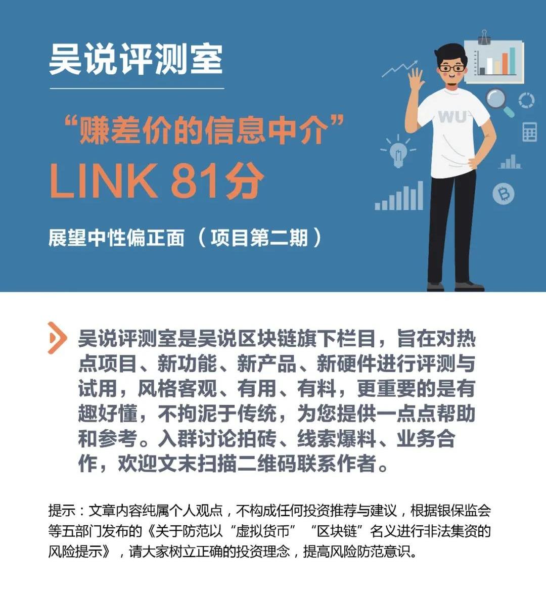 Oracle翻譯:神諭,神示;能提供寶貴信息的人(或書)。Chainlink要當信息數據中間商賺差價。信息商將數據提供Link,LInk再將這些可驗證的真實數據提供給智能合約來實現自動化的合同。Chainlink數據由API提供,比競爭對手用戶提交后投票的模式可靠性和效率都要高。關鍵技術先進還上線成功來。根據Github,共103個代碼倉庫,提交代碼的人數53人,項目分支有多達137個。ICO募集了大約3200萬美元,根據Aicoin,LINK目前市值排名前十。LINK正處風口中,團隊雖不太忙,但活好。雖然中心化金融機構尚未沒落,但去中心化的DeFi正熱,農村包圍城市,對手犯錯或是機會。幣價較高,回調后更安全。風險提示幣值提升過快,就投資而言,追高風險大。吳說評測室:全盤解析Filecoin74分展望中性偏正面吳說評測室啟動項目評測標準解析