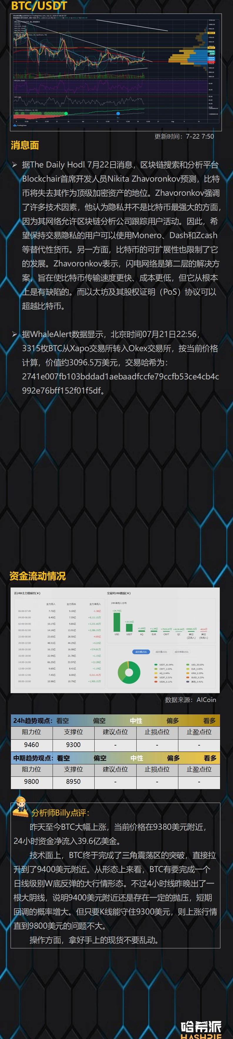 昨日晚市場出現下跌,至今天BTC從9400美元最低跌至9118美元,市場本就不活躍的交易情緒,再次受到一定打壓。根據火幣交割合約數據,BTC當季合約成交額上升,持倉量在下跌過程中出現下降,精英多頭占比略減,當季合約窄幅溢價較穩定。BTC目前在9100美元上方盤整,部分主流幣出現短時反彈,市場多頭情緒仍穩定。