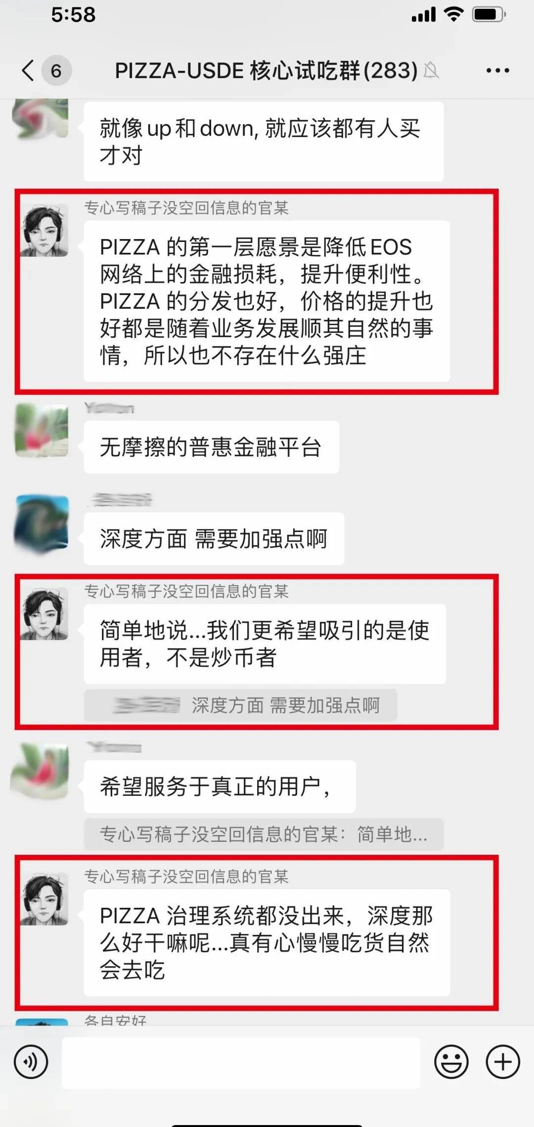 相對冷靜的PIZZA團隊這里很有意思的是,7月25日PIZZA漲幅非常可觀,當日我在PIZZA的社區里看到這樣一段對話,對話發生的背景是:有個別用戶在群里喊單,有另一個用戶就出來吐槽市場深度不夠,不適合購買,這時候PIZZA的負責人出來發言了: