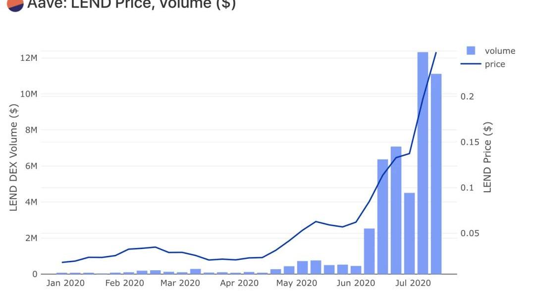 資料來源:TheBlock,DuneAnalyticsAave協議活動的增長已經吸引了來自市場的關注:Aave團隊最近宣布了來自FrameworkVentures和ThreeArrowsCapital的戰略投資,從年初至今二級市場的價格也因日益強勁的交易量上漲了1150%以上。