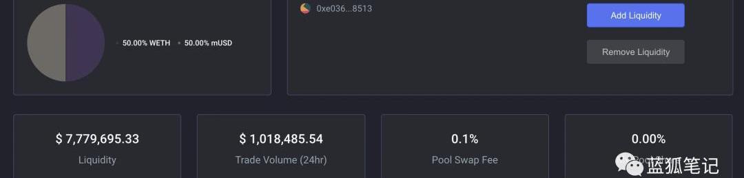 除了Curve上的流動性池,Balancer上也有不少流動性池:*Balancer上的mUSD-USDC池為mUSD提供流動性,可以賺取MTA和BAL。