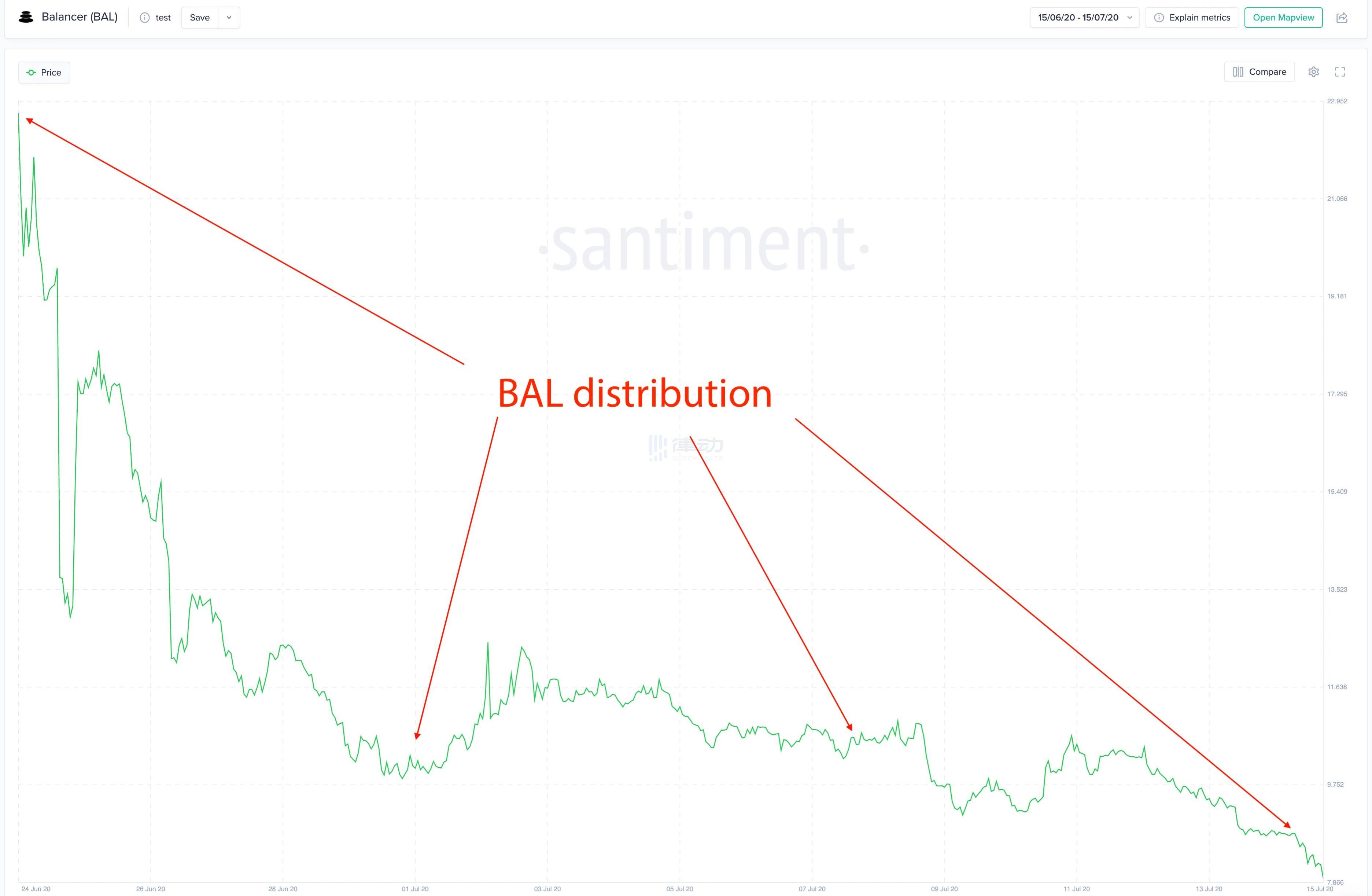 就像Compound一樣,收益率也會隨著時間的推移而持續下降。這在很大程度上是由于缺乏一個鼓勵「參與」的管理系統,而且一些獎勵轉向其他風險較小的代幣/穩定幣。目前,BAL的持有者幾乎沒有理由持有BAL,因此每周的發行都會增加賣出的壓力,從而推低BAL的價格,反過來,也推低了流動性回報(RoL)。