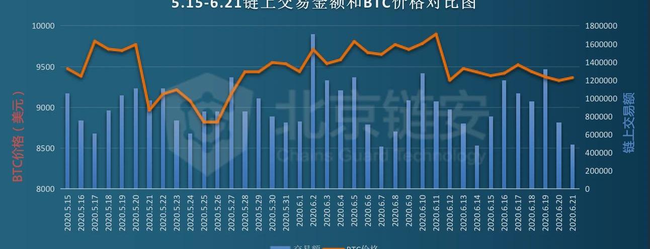 從時間段來看,3月12日到5月10日比特幣價格大幅反彈后首次遇上1萬美元的阻力位;突破失敗后比特幣價格隨即跌到8500美元附近,于5月11日到5月20日間再度向1萬美元沖擊未果,然后再次下跌到9000美元下方。接著在5月底比特幣價格再度向上突破,并一度突破1萬美元,但是在當天跳水,以至于分析師們“牛市”二字才喊出一半,接著比特幣價格進入了一個持續近三周的1萬美元以下震蕩期,直到6月最后一周徹底向下進入到9000美元掙扎線。6月剛剛過去,讓我們在這里回顧6月1日到6月21日這三周最新一輪的1萬美元阻力位周期下的鏈上數據,特別是鏈上數據體現的市場最活躍力量,即交易所的態勢變化,主角當然還是火幣、幣安、Okex的三國演義,希望為各位進一步的市場分析提供一個維度的參考。在業內,我們常常把三大交易所稱之為HBO,有些類似當年我們將百度、阿里、騰訊稱之為BAT的架勢。當然,我們知道,如今再提BAT只是一種習慣,AT已經大踏步向前,B甚至被不少后來者趕超。那么,就HBO來說,是否也會出現這種分化呢?由于交易所本身業務繁多,特別涉及合約這樣的金融衍生品業務并非鏈上數據可以一探其規模,我們只是從三大交易所流入和凈流入比特幣數據,來嘗試分析它們的影響力。一直關注我們鏈上數據月報的朋友,應該會注意到在比特幣流入上,火幣和幣安兩大所可謂大部分時候并駕齊驅,不相上下,而Okex稍遜一籌。從4月之后的數據來看,火幣和幣安的比特幣流入雙雙高于20萬BTC,而Okex為14.6萬BTC,在5月Okex數據增長到16.5萬BTC,距離20萬一檔還有差距。6月鏈上數據:幣安增長受阻,火幣逆勢向上,交易所“雙驕”態勢還將繼續進入6月,在近三周的1萬美元阻力位下,我們卻發現了一些變化,從鏈上數據來看,幣安增長開始受阻,而火幣則表現出自己的反擊。先看看大的背景,即6月1日到21日的鏈上交易額變化,為了充分體現于此前數據的比較,我們將起點從5月15日算起。