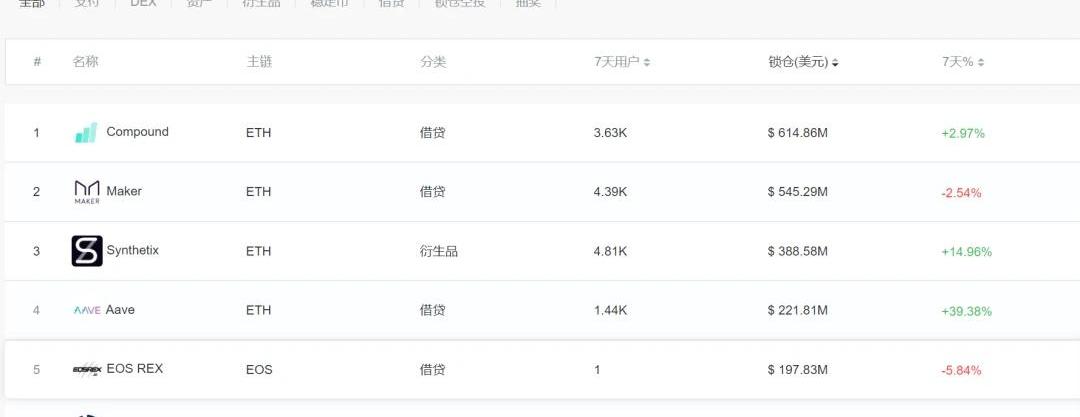 往下看,是按照鎖倉量排序的Defi項目,Defipulse將Defi項目按照Lending(借貸)、Dex(去中心化交易所)、Derivatives(衍生品)、payments(支付)、Assets(資產)五大類,每個項目點擊進去都有詳細介紹。內容詳細,界面簡單,適合對Defi感興趣的初學者使用了解。不過是外國網站,需要梯子,網站語言是英語對一些人可能略微有門檻。