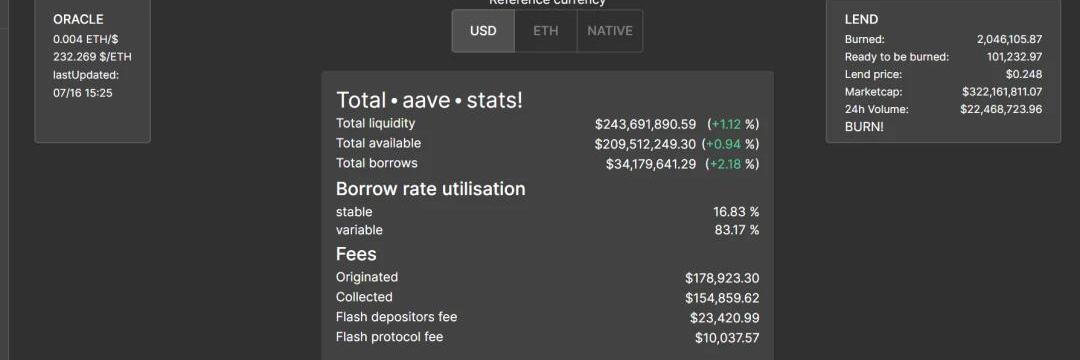 二、AaveAave是一個開放源碼的DeFi協議,用于借貸數字資產,包括SNX,USDT,MKR,TUSD,ETH,ZRX等。該儀表板統計信息包括每種資產的存款利率,借貸利率,可用供應量和借入數量。