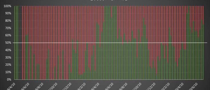 分項數據上來看,規模較大的經紀商持倉多頭頭寸自362張反彈至626張,該數值幾乎收復了前一統計周期的全數跌幅,空頭頭寸自80張同步反彈至203張。雖然這類賬戶多空持倉比數據在最新統計周期調倉完成后出現了向空方偏移的跡象,但是考慮到目前多頭頭寸數值仍然明顯大于空頭頭寸,加之多頭頭寸在短線這波快速反彈后直接創出歷史次高點水平,因此目前這類賬戶仍保持明確的凈多態度。