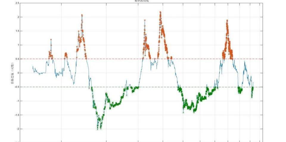 通過觀察,對曲線設置+0.5和-0.5的閾值,將閾值之外的點標出。