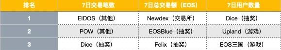 本周7日用戶數、7日交易總額及7日交易筆數等數據上增長情況相對較好的DApp有: