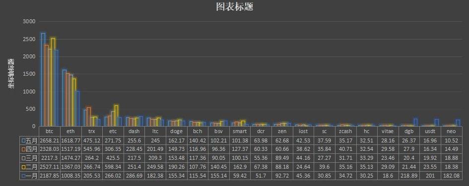 比特幣五月的全網活躍地址總數達到2658.21萬,較四月的2328.03萬上升14.18%,增速較四月上漲9.19%。而新增地址數則為1296.72萬,較四月的1186.63萬上升9.28%,增速則上漲3.13%。以太坊方面,五月全網活躍地址數量為1618.77萬,較四月上升6.70%,增速環比上升3.79%。新增地址數量為428.58萬,較四月回落16.20%。主流項目中,LTC和BCH的活躍地址增速超過了20%,而NEO、TRX、ETC以及ZCASH的活躍地址降幅均超過了10%,分別占據了增幅榜和降幅榜的前幾名。需要說明的是,大幅增長和下降與市場的關系未必成正比,但增長&下降分布的兩端或許意味著我們可以關注這些項目近期的市場走勢。