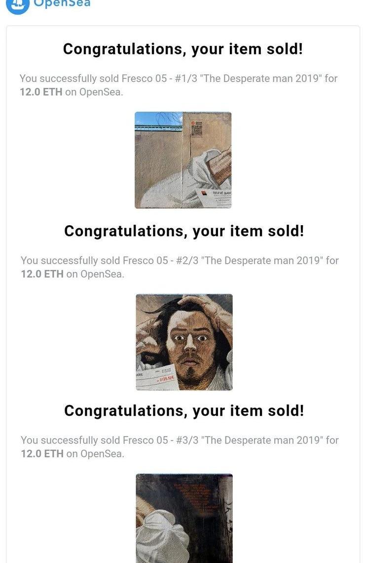 YuraMiron的作品不僅打動了WhaleShark先生的心,更打動了他的錢包。Afutureyouwouldactuallyliketolivein是他第一個入手的作品。2019年12月11日上午,他以2ETH的價格從YuraMiron手中得到了它。而這僅僅是開始,隨后WhaleShark先生連續出手,給猝不及防的YuraMiron來了個大清倉。這對YuraMiron來說是瘋狂的一天,Ta的手機從上午10點起不斷彈出郵件提醒,直到下午1點才消停,都是來自SuperRare的郵件,提醒Ta一個叫做WhaleShark的人以28ETH的價格買下了Ta的14件作品。YuraMiron特意給自己的郵件列表截了個屏,命名為“whalesharking”,并掛到了SuperRare上,以表達對WhaleShark先生的感恩。最終這張截圖也被WhaleShark先生收藏,當然,它是免費的。