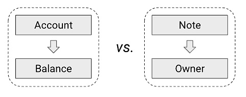 你可以把現金交易模式想象成某件物品 (note) 的所有權的變更,而賬戶交易模式則是兩個賬戶的狀態的變更。