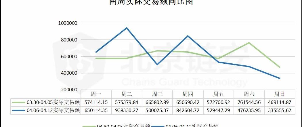 交易數:03.30-04.05:190996404.06-04.12:1943729較之前一周上漲:1.77%詳細數據圖如下: