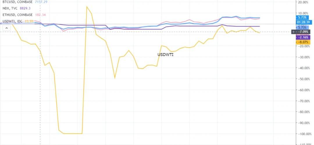 XRP/HKD-2.86%本周主流資產俱有比較明顯的漲幅,除了各類原油差價合約,下圖表中也并未將WTI種類列入其中,相對漲跌幅會影響到其他主流資產的市場表現直觀感受程度。