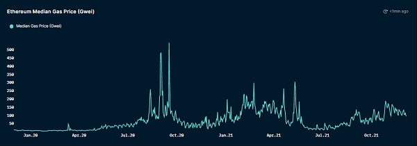 可擴展性問題是限制許多區塊鏈網絡增長和采用的主要問題。在以太坊網絡上,擁堵導致的高昂gas費用促使許多開發人員遷移到其他 L1 鏈和 L2 解決方案。當完成一項簡單交易的成本高于被轉移資產的價值時,高昂的gas費用變得非常令人望而卻步。高昂的gas費使零售參與者付出代價,并使商業模式在財務上不可行,從而蠶食商業模式。大型代幣持有者和機器人正在為零售定價,迫使他們承擔高昂的 gas 成本和基礎層的擁堵(以及糟糕的用戶體驗)。這當然限制了網絡的增長,從而扼殺了更廣泛的加密領域的創新。下圖顯示了過去兩年中gas價格的上漲情況,可在 Nansen 的gas跟蹤器儀表板上輕松獲得。