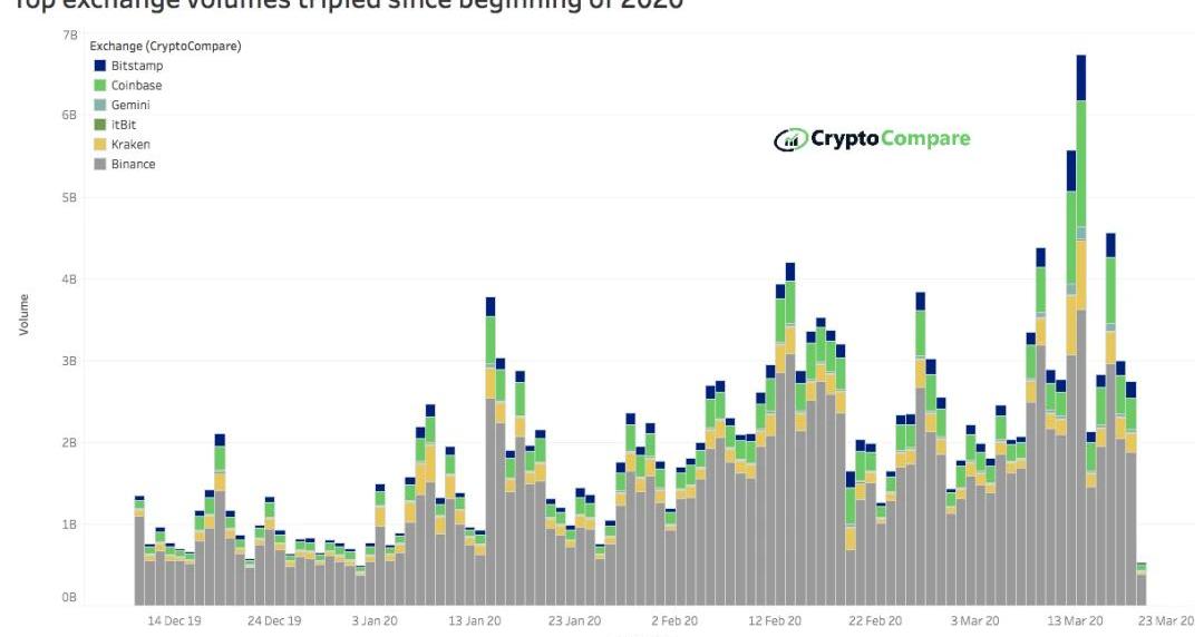 下圖表顯示了最近密碼交易所的交易量是如何飆升的,表明市場穩健。