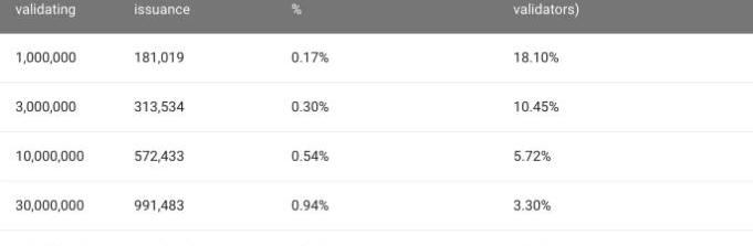 加密貨幣的貨幣政策比大多數人想象的更重要!對于使用發行方式來吸引礦工和算力的代幣,為確保網絡安全性而需要提供的資金發行量越少越好。我們已經看到BTC擁有最安全的區塊鏈,同時在前20種加密貨幣中發行率最低。目前,BTC的年發行量為3.8%,對比以太坊約4.5%的發行量,這是相當低的。雖然許多ETH持有者認為以太坊為網絡安全性支付了過多費用,但由于礦工的利潤不高,降低發行量可能會導致算力和安全性下降。所以降低PoW區塊鏈的發行量很難,因為可能會對區塊鏈安全性產生意想不到的副作用。BTC并沒有這個問題,因為它的大部分挖礦獎勵變化都是可以長期預測的。Eth2.0的最大目標之一是過渡到權益證明,這意味著廢除昂貴的ASIC或GPU礦機。如此巨大的計算量和功耗將被低成本的標準計算機所取代,這些計算機僅處理Eth2.0節點基本的功能,比如區塊傳播和同步。在維護網絡安全方面,成本要低得多!除了成為驗證者之前需要投資32個ETH。通過降低總體安全成本,可以將代幣發行量降低到0%-1%之間,具體數值取決于網絡中有多少驗證者(也即網絡中質押了多少ETH資產)。這樣,發行量就可以精確設計以獲得最佳安全性!