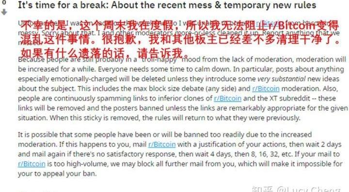 截圖源自:theymos在Bitcointalk上面的用戶界面theymos是比特幣核心開發團隊的一員,從比特幣誕生之初便參與項目的運行,在Bitcointalk論壇內活躍至今,早期階段還多次與中本聰共同討論比特幣的相關問題。根據Reddit網友Cowboy_Coder的說法,在2011年中旬r/bitcoin版主Atlaslgo試圖出售該討論社區的行為遭到社區強烈反對之后,這位匿名者獲得了r/bitcoin的所有權。再后來不知道什么原因,http://bitcointalk.org、en.bitcoin等多個以比特幣為中心的門戶網站也全部收歸于theymos名下。這種多個比特幣討論社區皆由一人管理的狀態,引發了用戶的不滿與質疑;到了2015年8月theymos在各個比特幣討論網站瘋狂刪帖的行為更是進一步激化了內部矛盾。回溯歷史我們發現該時期正是比特幣擴容爭端頗為激烈的階段,當時theymos認為主推區塊擴容的BitcoinXT支持者在討論社區上的發言讓r/bitcoin陷入混亂。為了停止這種分裂行為,他將所有關于增加區塊大小以及抨擊BitcoinCore團隊的討論全數屏蔽,還封殺了不少表達較為激進的用戶的相關賬號。