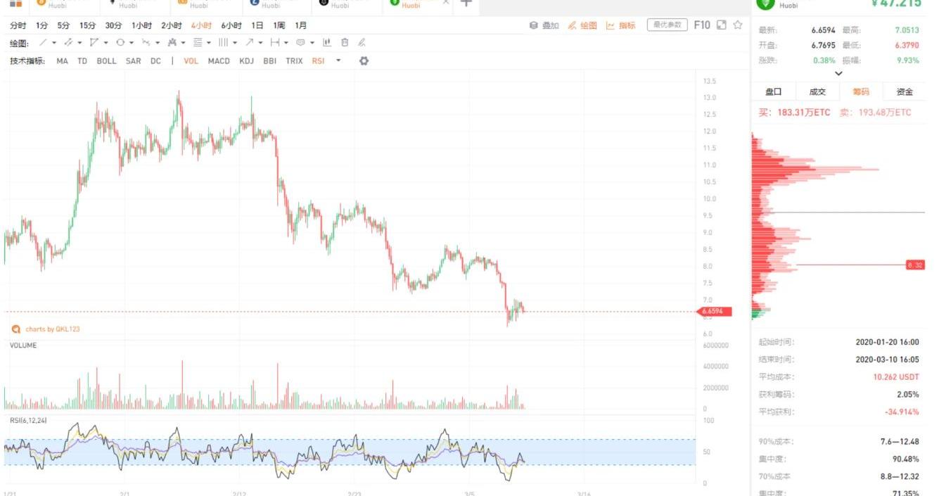 短時EOS從2.8美元的低點有所反彈,但多軍并未站上3.1美元的籌碼集中區,主力再次介入的意愿不強,等待比特幣震蕩企穩。六、現貨ETC行情
