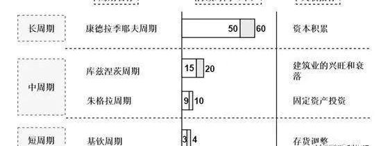 朱格拉周期又叫中周期或者投資周期。主要就是反映上述的企業投資運營周而復始的不同階段,一個朱格拉周期大致為10.5年左右,也就是說,一個庫茲涅茲周期包含有2個朱格拉周期,一個康波周期包含有4-6個朱格拉周期。每10年左右發生一次全球性金融危機,就是朱格拉周期的反映。但怎么判斷一個朱格拉周期的完整性呢?這就要看企業經營會生產產品,而產品與市場的不對稱性會導致產品產生快速出清而產能不足,或者產品過剩導致積壓令到生產意愿降低這樣一個過程。這個過程就是基欽周期,也叫做短周期,或者庫存周期。如果將商品供給跟需求拆開分別結合庫存,就會分為主動去庫存、被動去庫存、主動加庫存、被動加庫存四個階段。一個庫存周期大致為40-42個月左右,也就是3.5年。這基本上就是經濟周期的最小單位。一個朱格拉周期中含有3個基欽周期。