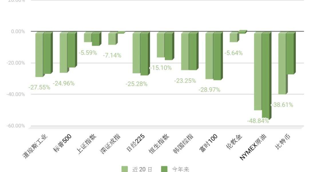 XRP/HKD-2.17%Overview概述市場黑天鵝起舞,全球金融資產進入「減半」進程,各大央行相繼降息放水,危險中孕育機會,投資者將如何平衡風險和收益。Report報告今年全球市場處于黑天鵝頻發狀態,除了黃金和深證成指有微弱漲幅外,其他具有代表性的資產都在大幅下跌。尤其近20日市場主要指數跌幅都在20%以上,尤其是原油和比特幣,跌幅在30%以上,區間振幅更是超過50%。原油主要是受到了經濟下行預期增強和沙特石油增產所影響。而比特幣則是受全球經濟下行預期增強和全球疫情進一步加劇的影響,在各項資產都被拋售的時候,比特幣未能頂住壓力。市場逐漸被流動性恐慌所控制,開始拋售各類資產來保證自己的現金流充裕,雖然目前各國在不斷降息,以保證市場資金的流動性。特別是美國直接降息至0區間,上一次0息的時候是美國2008年金融危機的時候。所以當出現過度釋放市場資金的行為時候,市場變得更加恐慌和脆弱,短短2周的交易時間內,讓我們看到了3次美股指數的熔斷,而再上一次,也是之前唯一的一次,是1997年的時候。