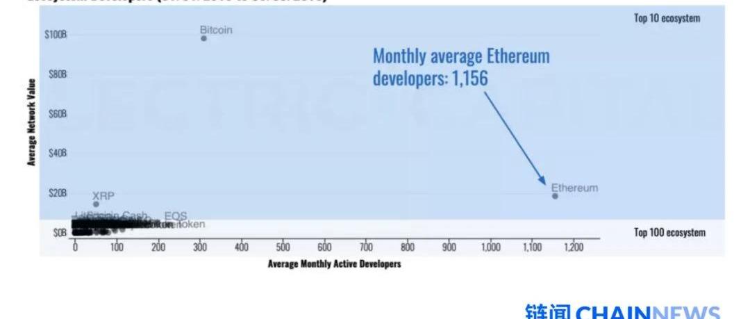 ETH、EOS和TRON的對比,數據來源:區塊瀏覽器,CoinMetrics,DApp.com,2020年2月6日可以看出,以太坊在地址數量、DApp數量、日活和市值方面都遠超過EOS和TRON,同時,ElectricCapital在2019年發布的一份報告顯示,以太坊社區的開發者數量是任何其他公鏈開發者數量的4倍以上。正是以太坊在區塊鏈領域的巨大優勢和接受程度,讓以太坊有底氣相信,即使對Staking做出嚴格的限制條件,還是會有大量的用戶愿意參與其中。