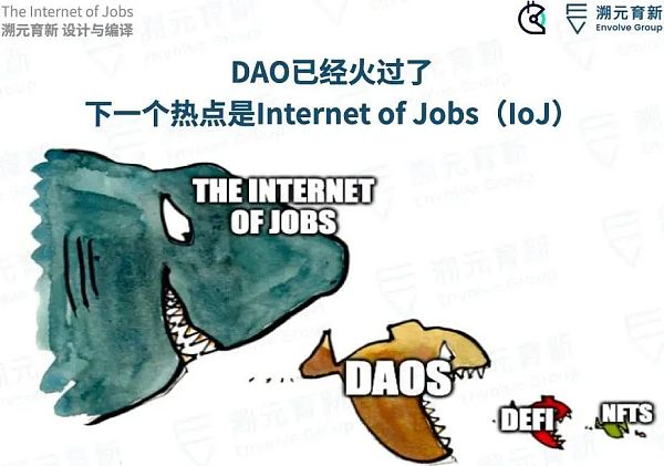 很多1CO、NFT、DeFi項目都已經變成了一個DAO,因為DAO這種組織形式能夠天然地聚集一幫crypto-native的成員。可以說DAO是internet of jobs出現和成熟的前置條件。