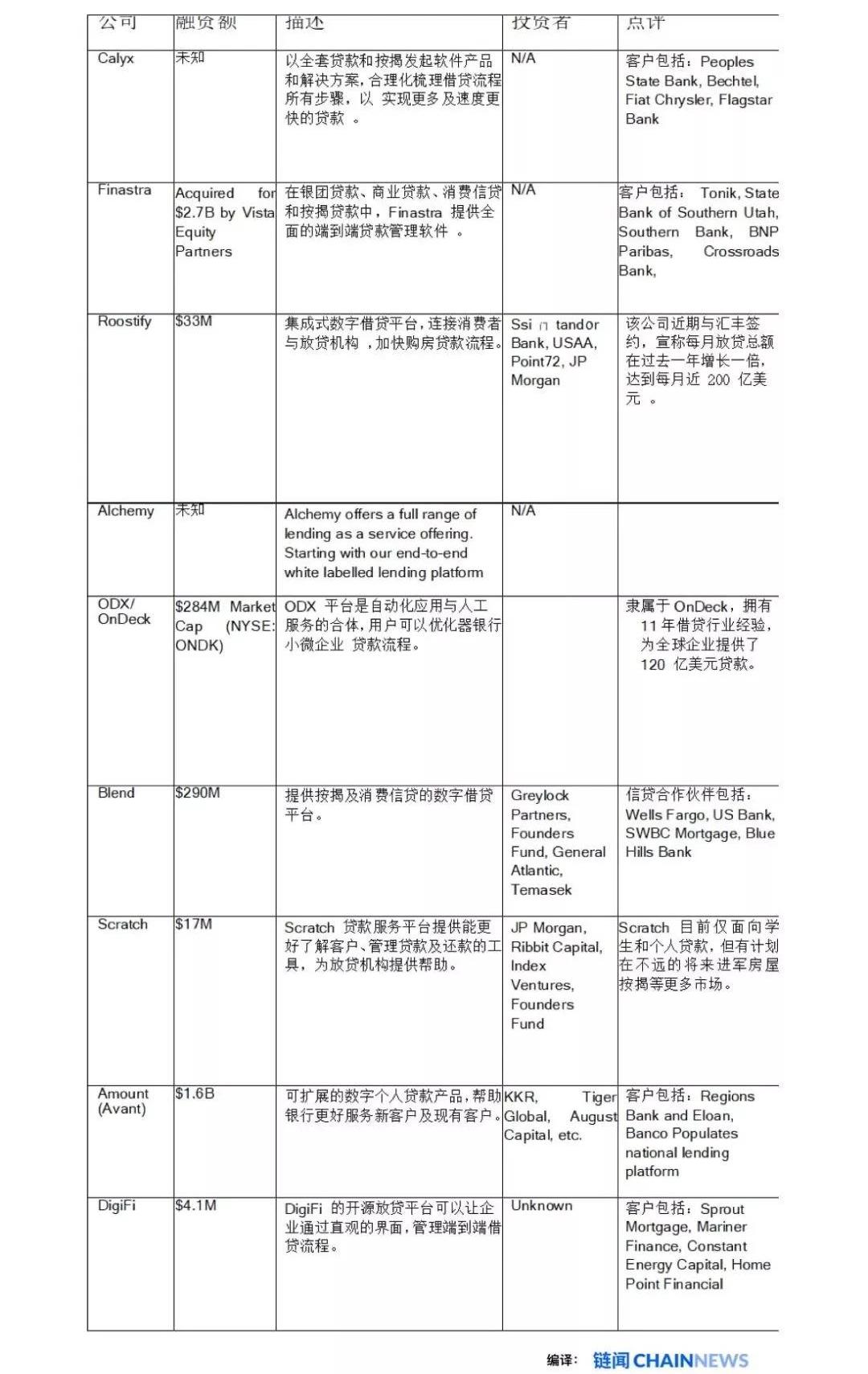 放貸即服務該范疇包括提供端對端放貸解決方案的平臺,這些方案可以嵌入金融科技應用中,或在放款人和金融機構中使用。這包括某些傳統玩家,也包括那些通過API提供這類服務的新興初創企業。