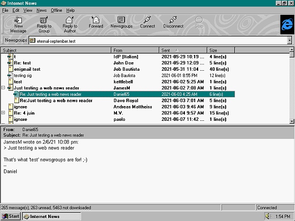 簡單來說,你可以像發送電子郵件一樣將消息發送到新聞組服務器,然后就可以供全世界的用戶隨意查看了。你可以回復話題中的其他消息,或直接給帖子的作者發送電子郵件。評論展開來是樹狀的視圖,與 Reddit 的評論系統非常類似。新聞組服務器可以選擇托管某些新聞組,并定期與網絡的其余部分同步,以保持最新狀態。Usenet 消息與如今的 FidoNet 系統也很類似。在我看來,這是當時設計非常精美的系統。