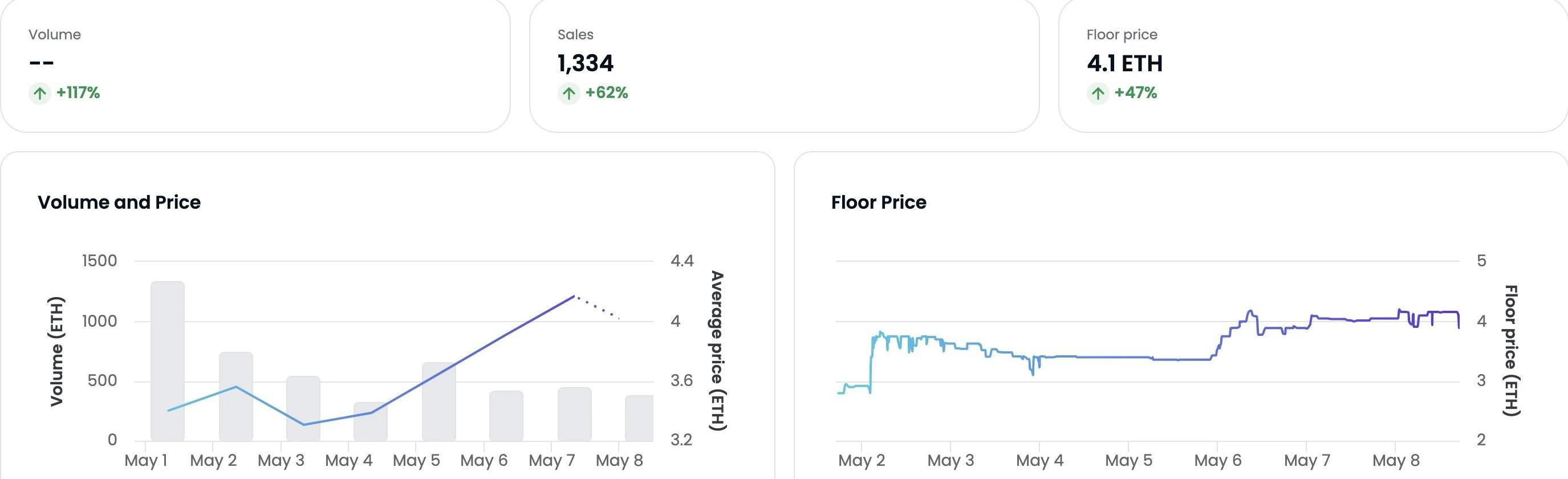 近日,”名為@xiaowuDD666的加密KOL指出,PEPE等Meme潮其實是NFT資金抱團炒作起來的,且推特上最早期的推薦者和鏈上地址均均有Milady。而從PEPE的早期地址來看,確實有不少Milady持有者。比如,曾以263美元購買超5.9萬億枚PEPE獲得萬倍收益的匿名交易員Dimethyltryptamine.eth就持有約37個Milady。不僅如此,管理PEPE總供應量6.9%的多簽錢包之一地址中的最早ETH則來源于持有Milady衍生項目Remilio。而不少PEPE持有者也在獲利后表示將利潤用于購買Milady,這也導致近期其NFT價格飆升。OpenSea數據顯示,截至5月8日,Milady的交易量超3.3萬ETH,持有地址數超3300個,地板價為4.1ETH,而鑄造價僅為0.06ETH。過去7天,Milady的交易量上漲1117%,地板價上漲約47%。