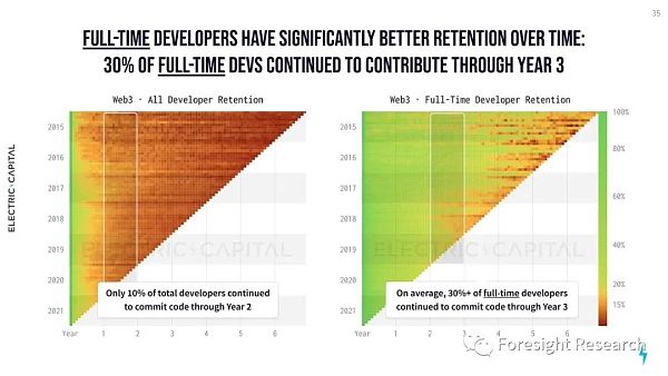 30% 的全職開發人員會堅持做 4 年 Web3 相關的全職工作.