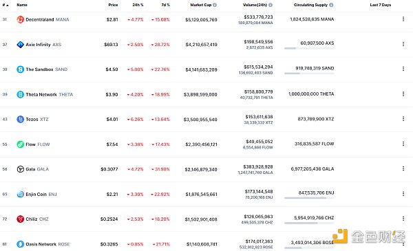 NFT總市值、市值排名前十項目 數據來源:coinmarketcap