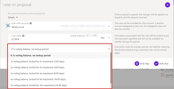 為了規避這樣的問題,加權投票是個不錯的方式,有些 DAO 組織讓投票效用與持有時長(幣齡)掛鉤,持有時間越長,投票權越大,還有一些 DAO 組織,讓投票效用與鎖倉時長掛鉤,例如Polkadot:用戶可以選擇不鎖倉,但投票效用極小,選擇較長的鎖倉時長,可以提高投票效用。