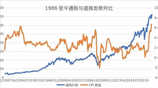 圖4:1953-1986通貨膨脹與道指走勢對比