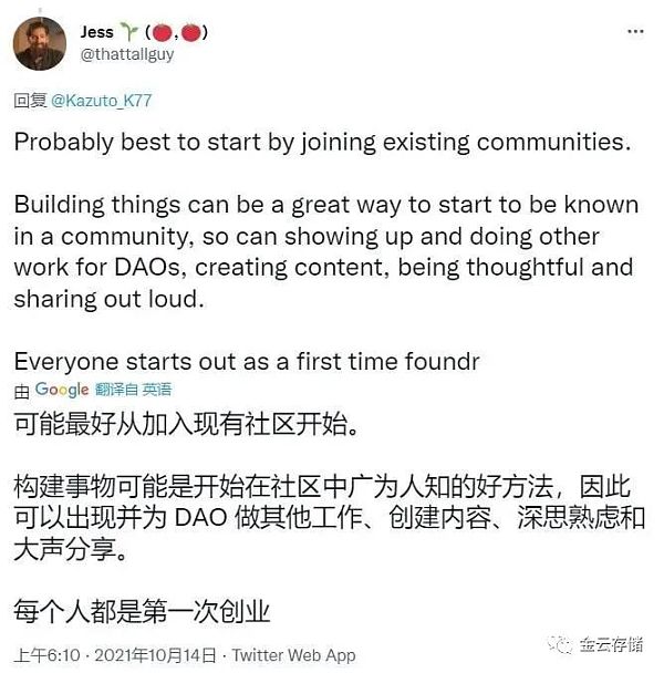 加入 DAO 沒有規范。每個人都有不同的做事方式。一旦你找到了一個真正讓你感興趣并且與你很配 DAO,你就會想要熟悉社區的文化或氛圍。最好入口是 DAO 成員最活躍的地方。加入一個社區電話會議、一個新人會議或一個公會會議,并開始學習!