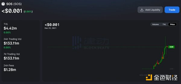 2021-12-25,據 Uniswap 數據顯示,SOS 24 小時交易量已達 1.33 億美元。