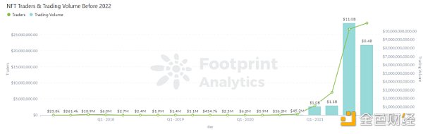GameFi通過游戲化的設置,賦予了NFT更實用的價值,里面的NFT道具不再僅僅是被掛在NFT交易平臺上的待出售商品,還可以直接在游戲里的市場上進行交易,且整個交易過程比傳統游戲簡單。這些因素直接導致了2021年整個游戲NFT賽道的爆發。