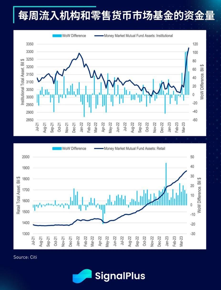 -流入貨幣市場基金的資金量已經趨于穩定,過去一周流入機構基金的資金為540億美元,已從前兩周的平均水平1000億美元回落,流入零售貨幣市場基金的資金量也逐漸穩定,每周約110億美元,而前幾周為150-200億美元的水平。