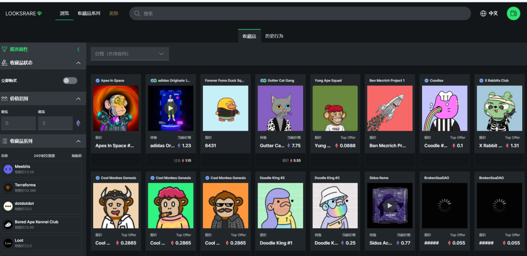空投又來了,而且這次的LooksRare顯然有備而來,在發放空投時,它就已經帶來了一個完整的NFT交易市場。這個新的「顛覆故事」顯得更加吸引人。