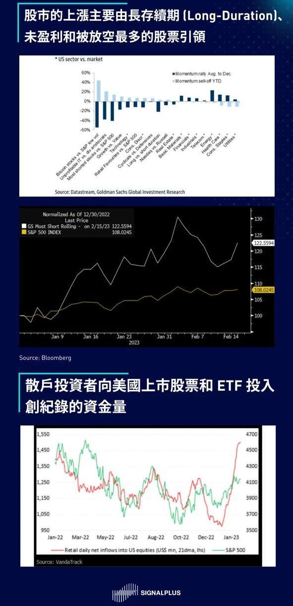 總結來說,市場對宏觀經濟的嚴重擔憂已經過去,我們擔心的尾部風險也有所減少,然而當前的股價也已經很大程度地反映了這些正向轉變。不管是否已經“轉向鴿派”,美聯儲仍然堅持今年的利率會保持在5%或以上,現在宣布戰勝通脹還為時過早,實際上,在經歷過度下行之后,債券收益率在2月已經開始回升,10年期美債收益率升至3.80%以上,而聯邦基金對2024年利率軌跡的預期已經比一個月前高出80個基點。由于一些經濟指標仍然相當火熱,軟著陸的討論已經開始演變成“不著陸”,而股市最終可能會失望,因為降息很可能不會在2023年實現。在當前的資產價格下,我們認為,相較于輕度經濟衰退,經濟“強勢突破”加上通脹回升對資產價格的傷害將更加嚴重。