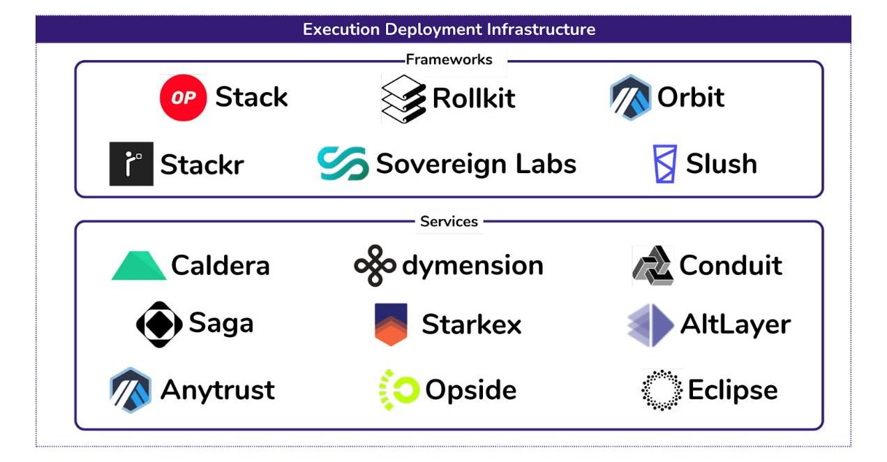 正如預期的那樣,區塊鏈領域的模塊化趨勢已經產生了許多rollupSDK/框架和rollup-As-a-service提供商。在這一領域建設的公司僅在2022年就籌集了5000多萬美元。這些解決方案都有一個共同的目標,即顯著簡化創建新執行層的過程。他們的目標是簡化執行層的開發,類似于CosmosSDK和Substrate如何促進第1層區塊鏈的創建。其愿景與應用鏈理論非常相似,但這些應用鏈不依賴于構建L1基礎設施,而是可以從現有L1繼承安全性。正如Celestia的Mustafa所強調的,理解Rollup框架和rollup-As-a-service之間的區別非常重要。