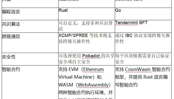 關于Substrate框架與CosmosSDK我們可以通過一個對比圖,簡單的對他們有個基本的了解: