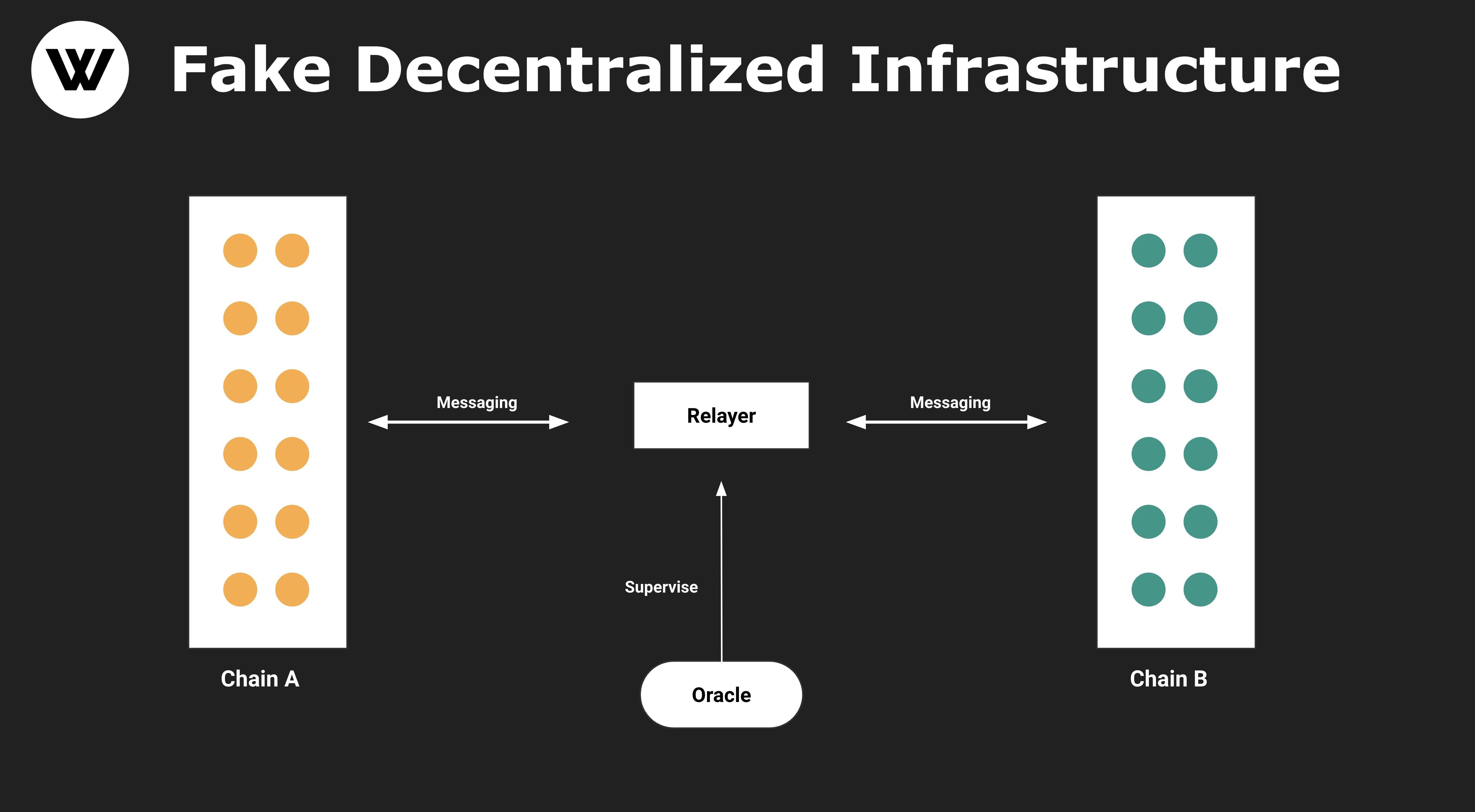 我們先看一個產品設計架構。ChainA和ChainB之間的通訊過程由Relayer來執行,Oracle對Relayer進行監督。首先這個架構有一個優點是免去了傳統的ChainA、ChainB之間的通訊由第三條鏈完成共識算法以及數十個節點驗證,因此能給終端用戶帶來“快速跨鏈”的用戶體驗。因為架構輕便,代碼量少,Oracle有現成的Chainlink,所以這種類型的項目很容易上線,但也很容易被模仿,技術門檻可以說是Zero了。