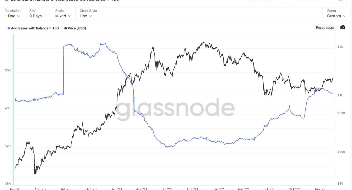 持幣100以上地址數下行